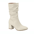 A soft off-white slouch boot from Beira Rio featuring a mid-calf height and relaxed shaft design. The block heel and rounded toe provide stability and comfort, while the smooth finish makes this an easy match for layered winter looks.
