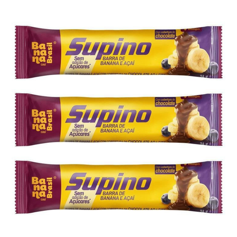 A linha Supino reúne os melhores ingredientes em opções nutritivas, práticas e saborosas. A combinação de banana-passa com uma deliciosa cobertura de chocolate zero adição de açúcares promove saciedade, energia e sensação de bem-estar, já que a banana e o cacau contêm em sua composição o aminoácido essencial triptofano, que ajuda o organismo a produzir serotonina, um neurotransmissor que melhora o humor.