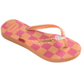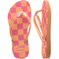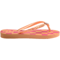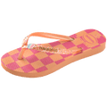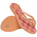 Essa sandália, com o modelo delicado da slim, com tiras e solado mais finos, possui as tiras metalizadas com aplicações de glitter que combinam com a estampa da sola.