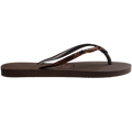 A Havaianas Slim Glitter II tem uma paleta de cores sofisticada e um novo formato do glitter aplicado nas tiras, que reflete a luz de uma maneira mais pura e deixa o modelo ainda mais brilhante.